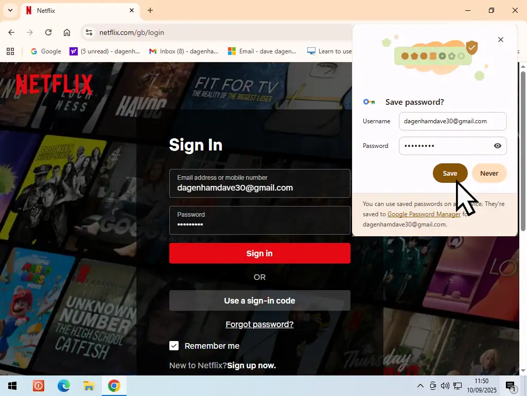 Or if you’ve already got the website login saved to Google password manager, it’ll offer to autofill your username (usually your email address) and password for you.