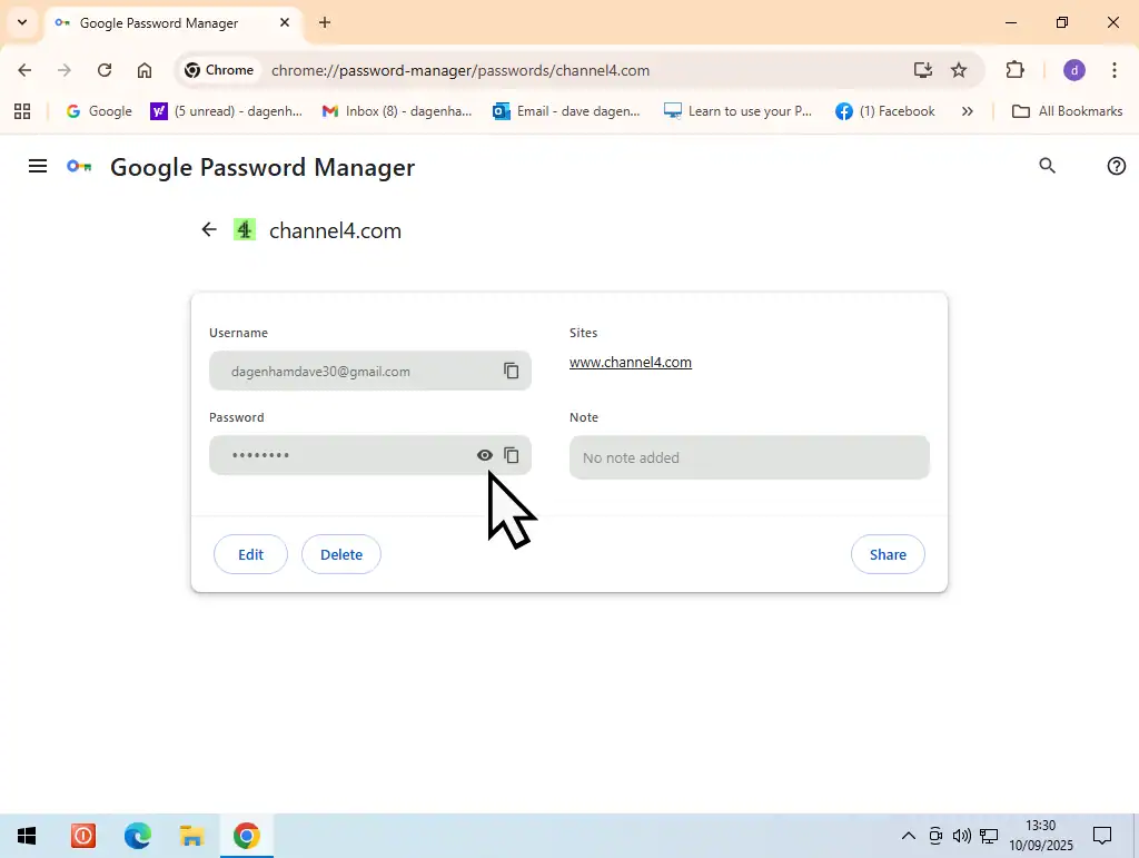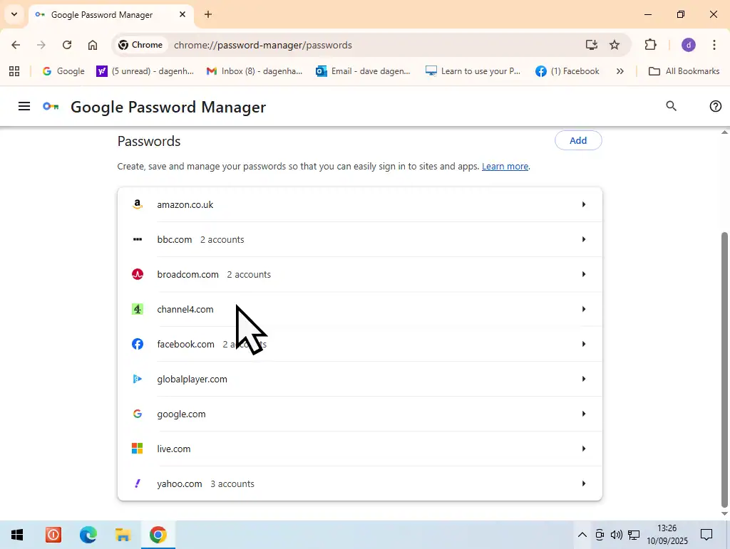 You’ll see all the login details that Chrome has saved for your various accounts. To view the password for any of the accounts listed, simply click on the website name.