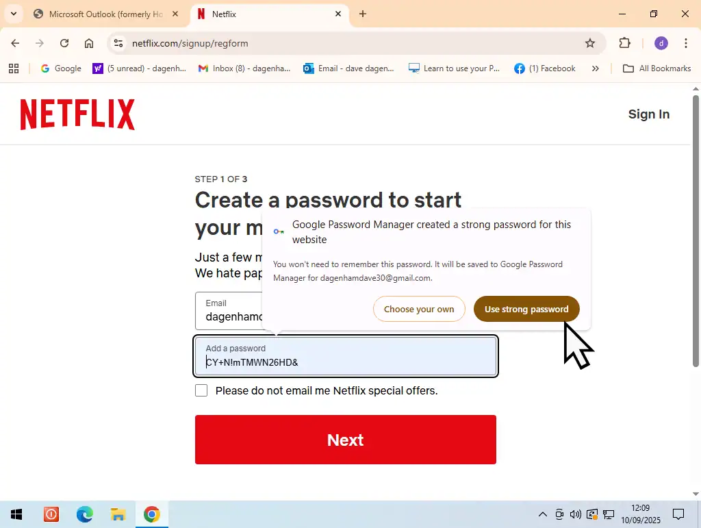 To accept it, click the Use Strong Password button. You’re username and password will automatically be save into Google Password Manager.